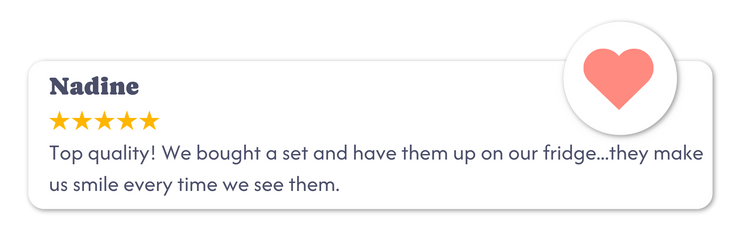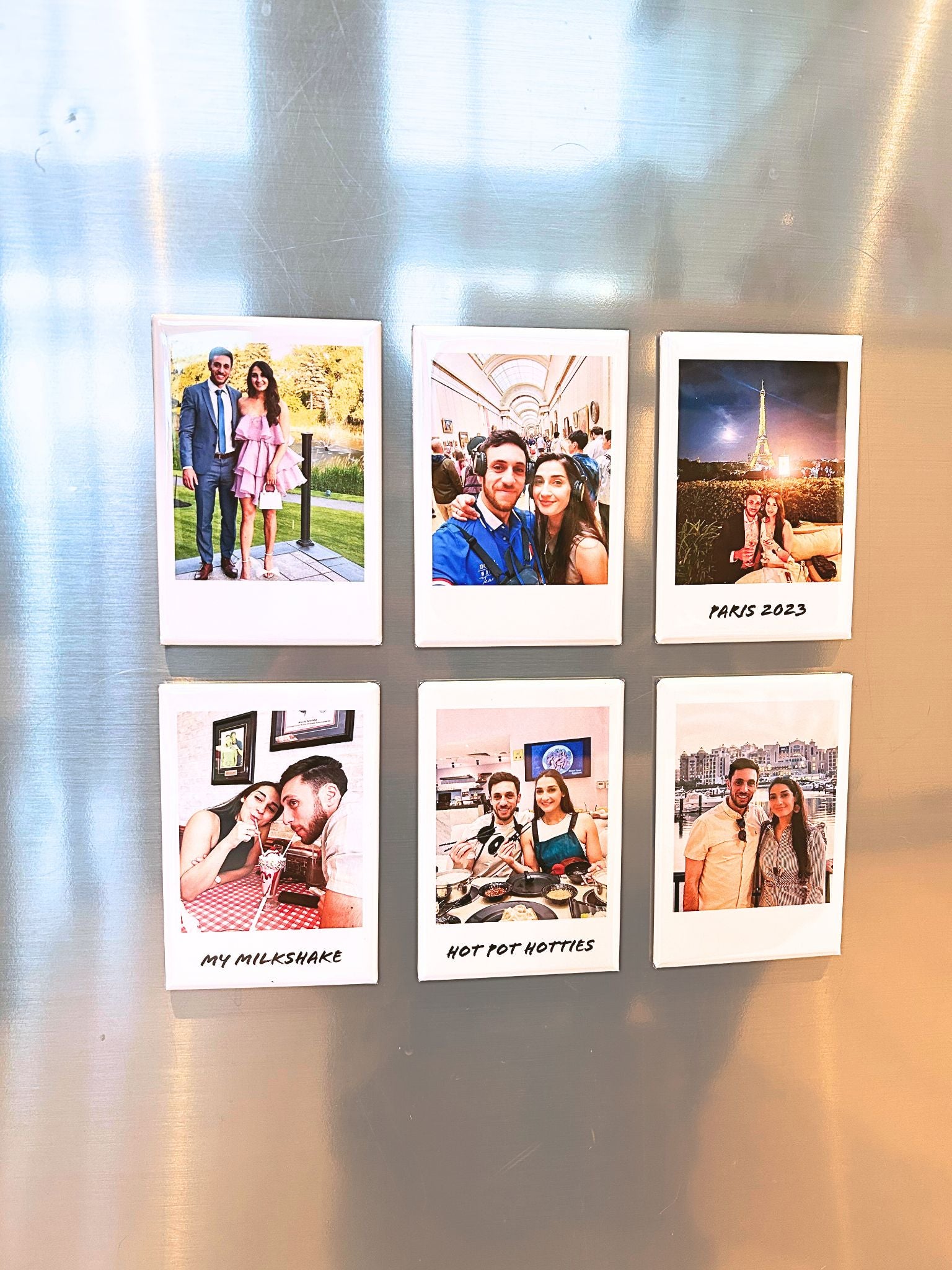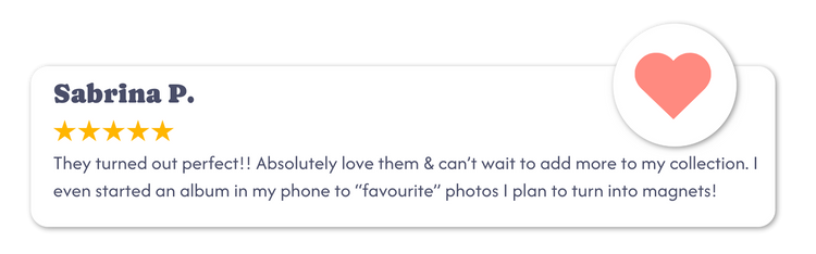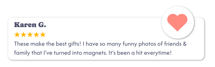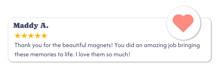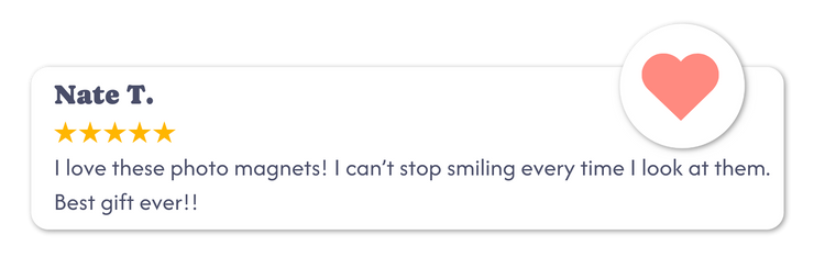 Want to make it extra special? Add a caption to any magnet you’d like. Whether it’s a date you’ll never forget, a sweet note, or an inside joke that still cracks you up, each caption is printed in our signature handwritten style for that personal, nostalgic touch.